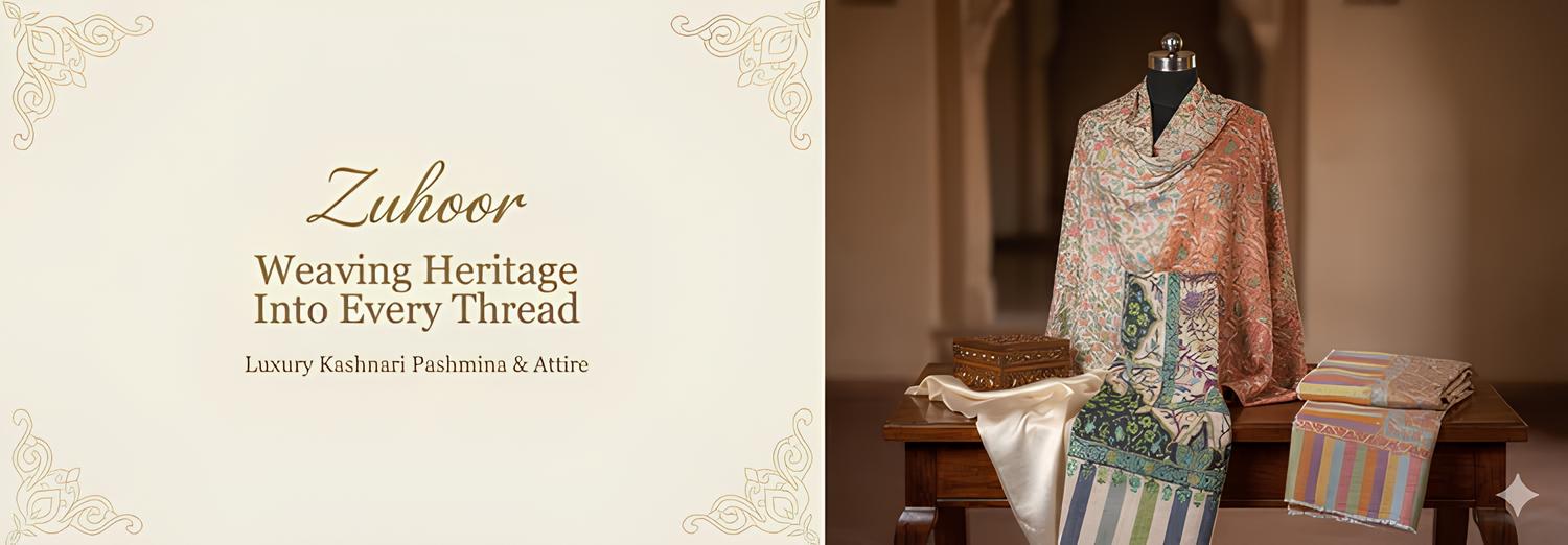 Zuhoor celebrates the timeless artistry of Kashmiri craftsmanship through our exclusive collection of authentic pashmina shawls, stoles, and hand-embroidered attire. Rooted in centuries-old traditions, each piece carries the soul of the skilled artisans from the Kashmir Valley who have preserved this exquisite craft for generations.